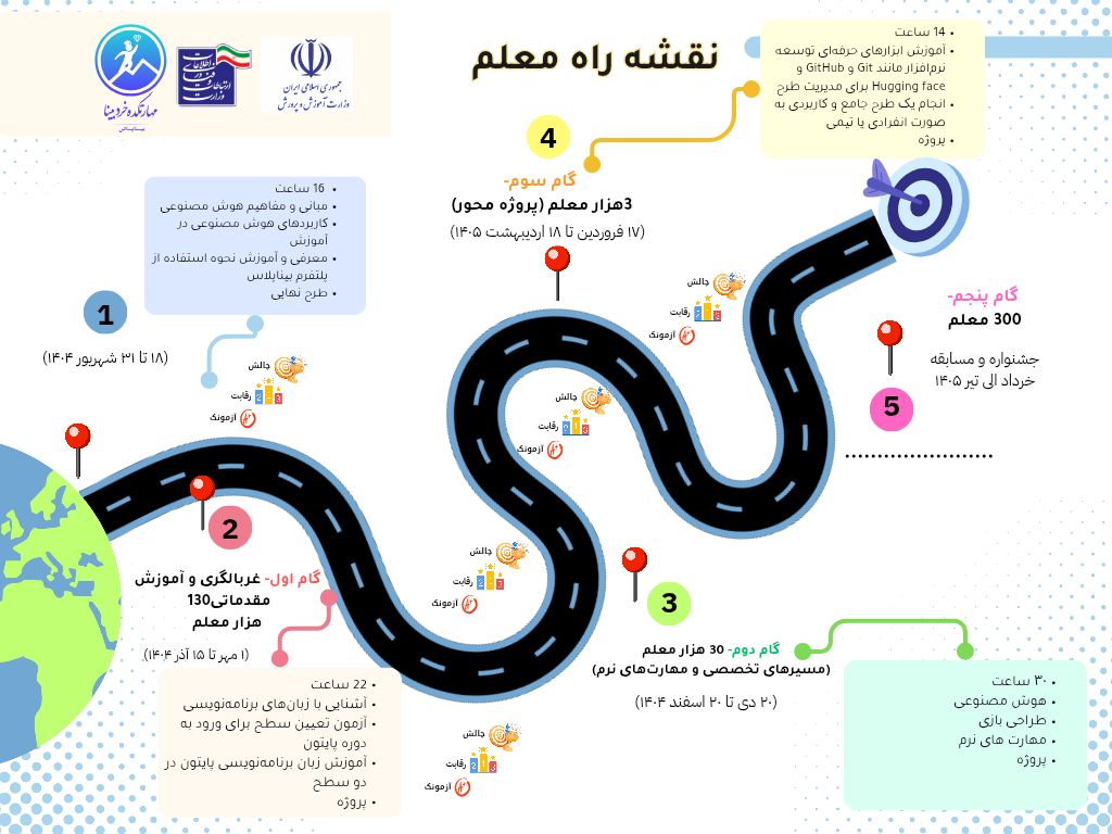 طرح مذکور با همکاری”معاونت آموزش متوسطه وزارت آموزش و پرورش” و “معاونت فناوری و نوآوری وزارت ارتباطات و فناوری اطلاعات” در چهار مرحله طراحی شده است. در مرحله نخست، فرآیند غربالگری معلمان و دانش آموزان به منظور شناسایی افرادمستعد اجرا میشود. مرحله دوم به شناسایی،آموزش و توان افزایی آنان اختصاص دارد. در مرحله سوم، آموزشهای تخصصی برایارتقای مهارتها ارائه خواهد شد.